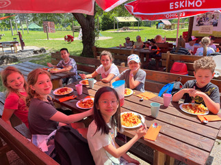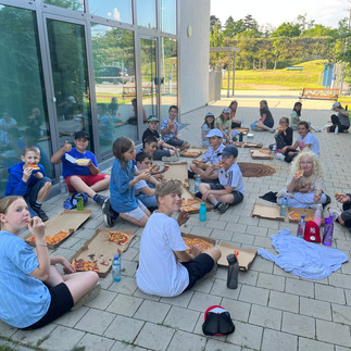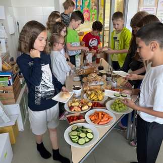 Nach dem abenteuerlichen Tag gab es in der Schule noch eine Pizza-Party und einen Kino-Abend mit Übernachtung in den Klassenzimmern. In der Früh stärkten sich die Kinder am Frühstücksbuffet.
